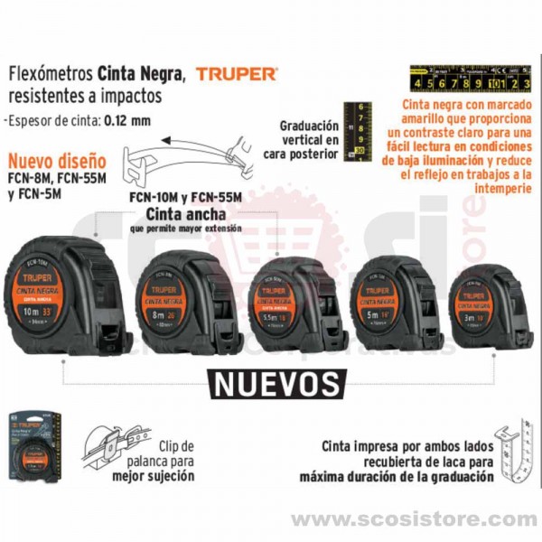 Cinta negra con marcado amarillo que proporciona un contraste claro para una fácil lectura en condiciones de baja iluminación y reduce el reflejo en trabajos a la intemperie.