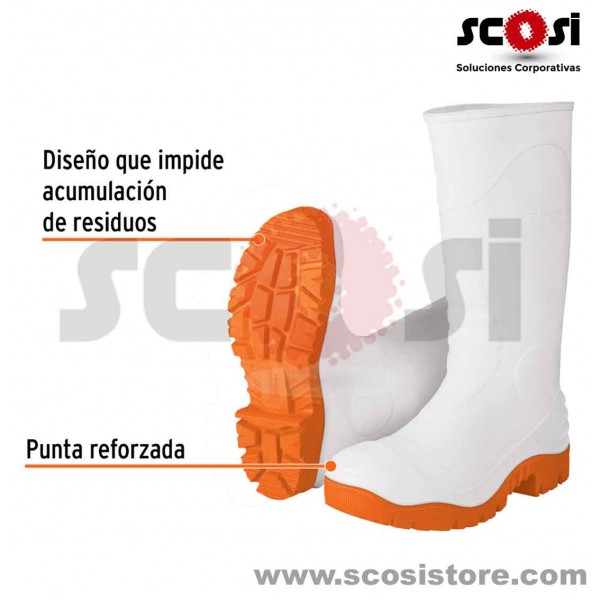- Suelas antiderrapantes con diseño que impide acumulación de residuos