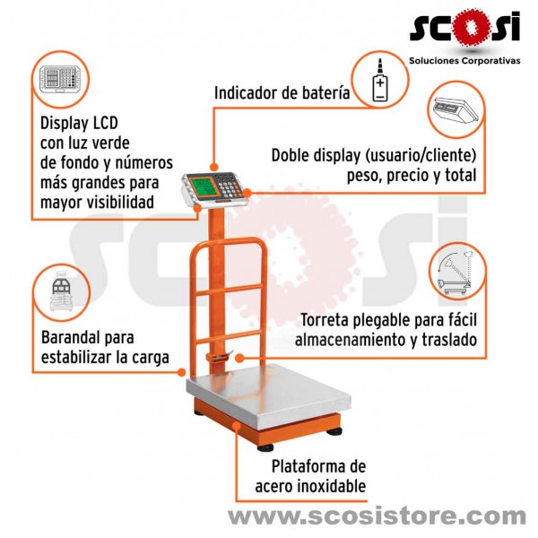 Indicador con carcasa de acero inoxidable y doble display (usuario y cliente) peso, precio y total