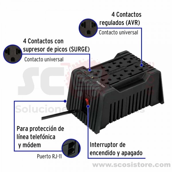 - Protección contra sobrecargas, cortocircuitos y picos de tensión