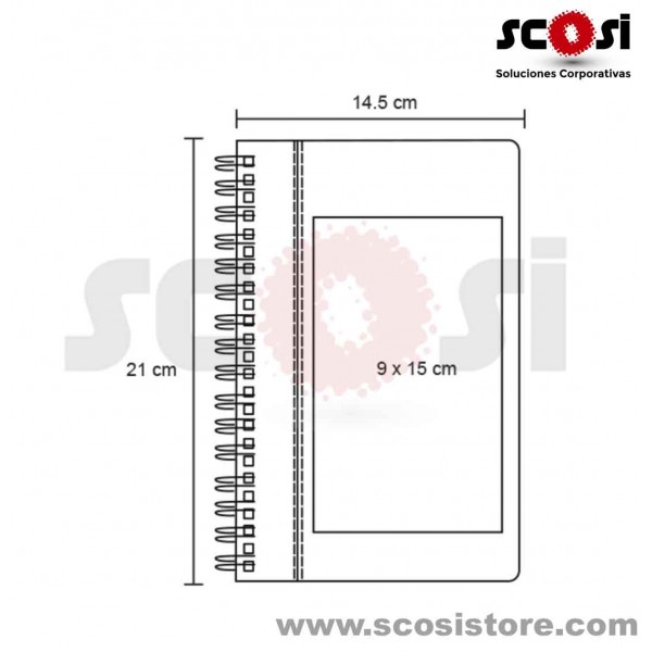 Cuaderno CorporativoPasta dura impresa a todo color100 hojas papel bondTamaño 1/2 cartaWire'o metáli..